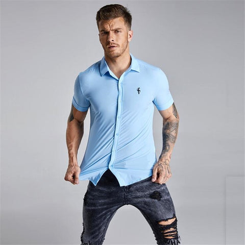 Gender: MenItem Type: ShirtsSleeve Length(cm): ShortCollar: Turn-down CollarPattern Type: SolidSleeve Style: RegularStyle: CasualBrand Name: NANSHAMaterial: CottonShirts Type: Casual ShirtsModel Number: DXCS03Closure Type: Single BreastedFabric Type: Broadcloth